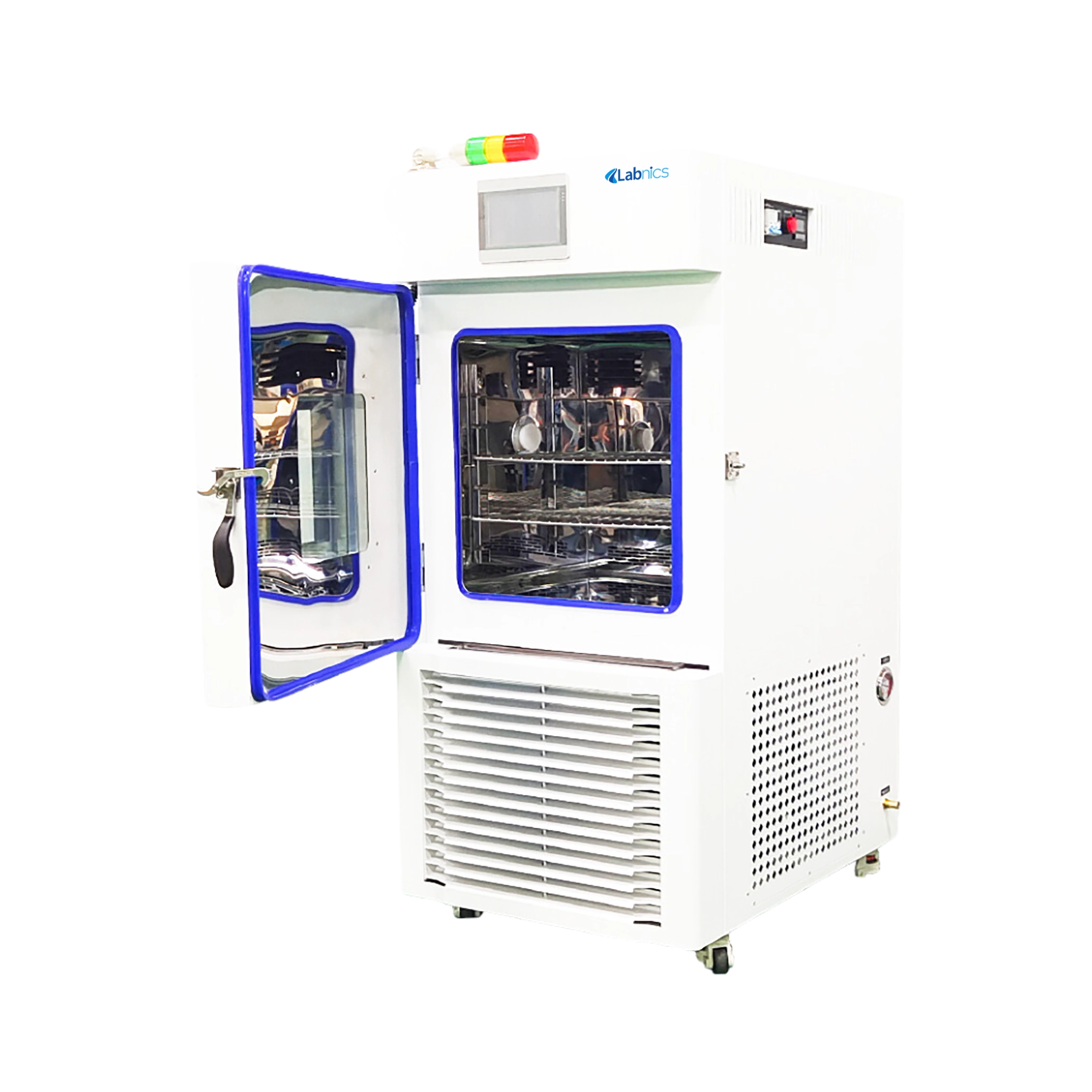Labnics Environmental Test Chamber offers different capacities to meet various testing needs and sample sizes. They are equipped with a PLC controller for precise and reliable control of test parameters. These units offer real-time data display and storage for easy monitoring and analysis. Our test chambers include safety features against leakage, short circuits, overloads, and over-temperature. They are equipped with castors for easy mobility and convenient placement.